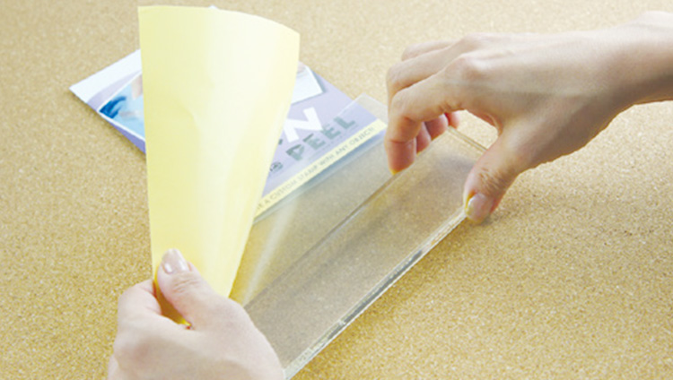 Peel off the yellow release sheet to match the size of your acrylic block, and attach the acrylic (leave the transparent film in place).