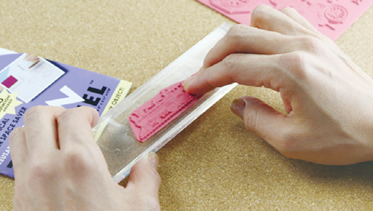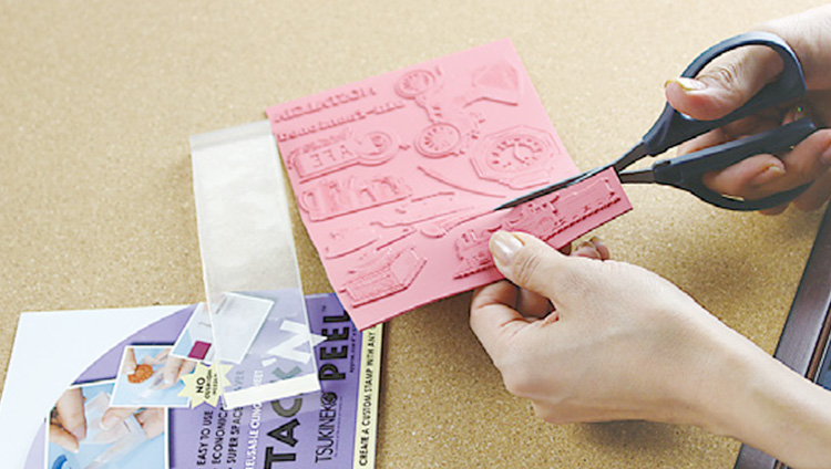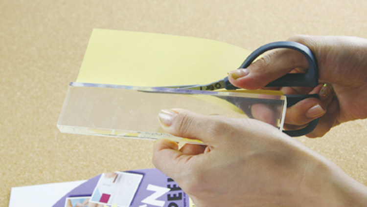 Trim along the edge of the acrylic block (easily cut with scissors or a craft knife).