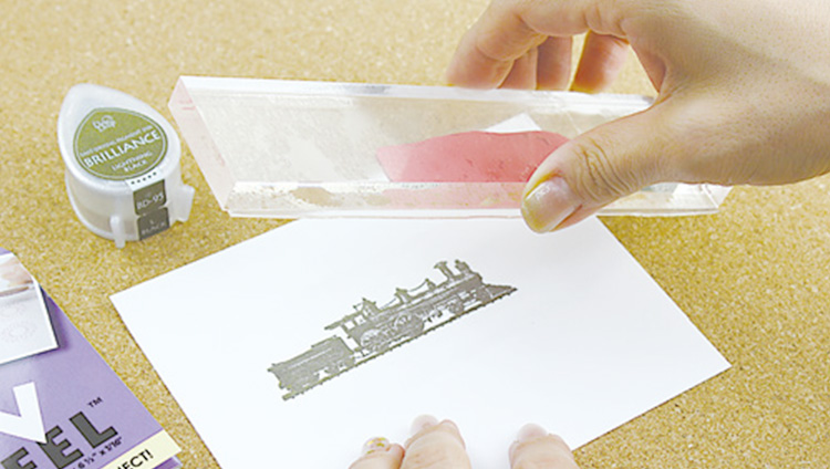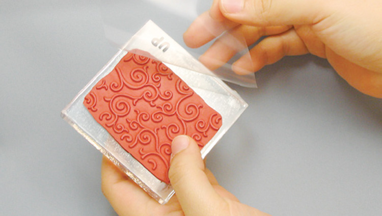 Peel off the top transparent film, attach the UM, and stamp (do not throw away the film).