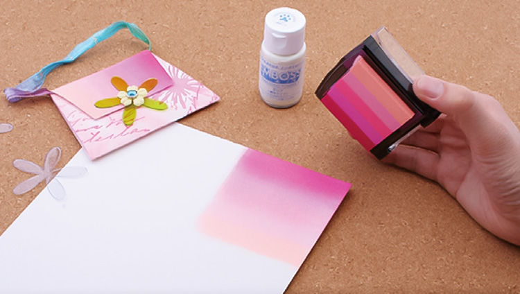The 5-color pad can be applied directly to paper for beautiful gradients and is also ideal for embossing.